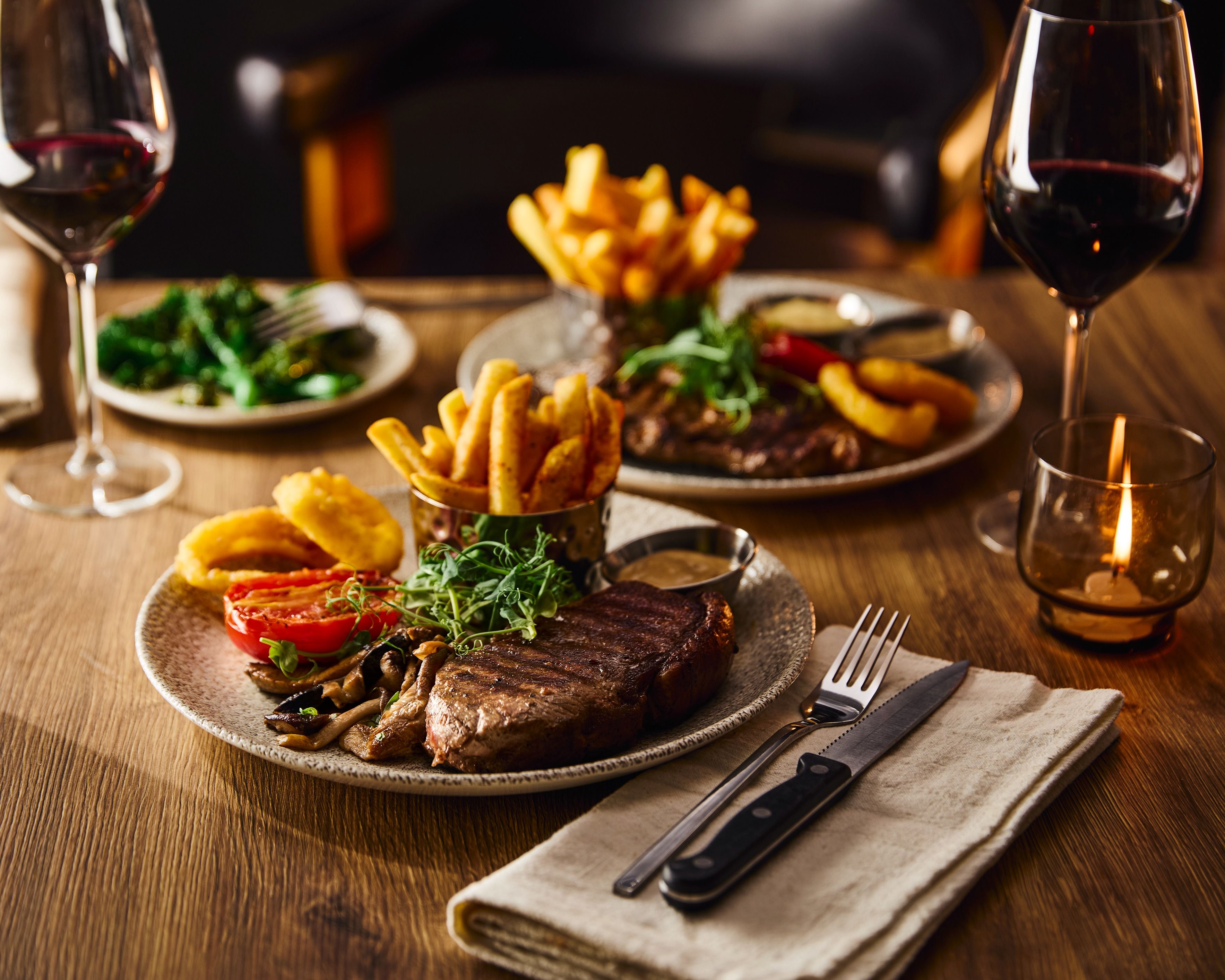 Down in the Tavern Bar, you’ll find the hum of chatter, a tankard or two raised and plates of pub favourites – a golden fish and chips among them. Or wander upstairs to the top floor to find Poplars with balcony and views.