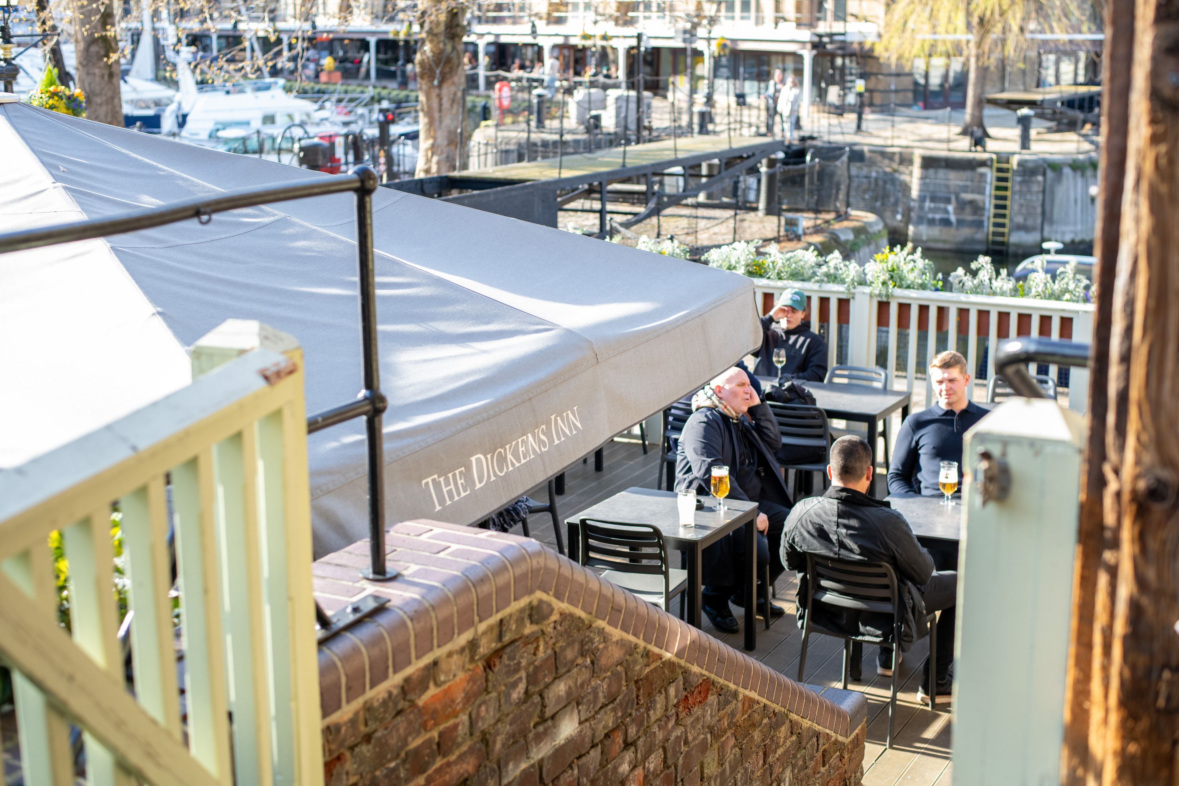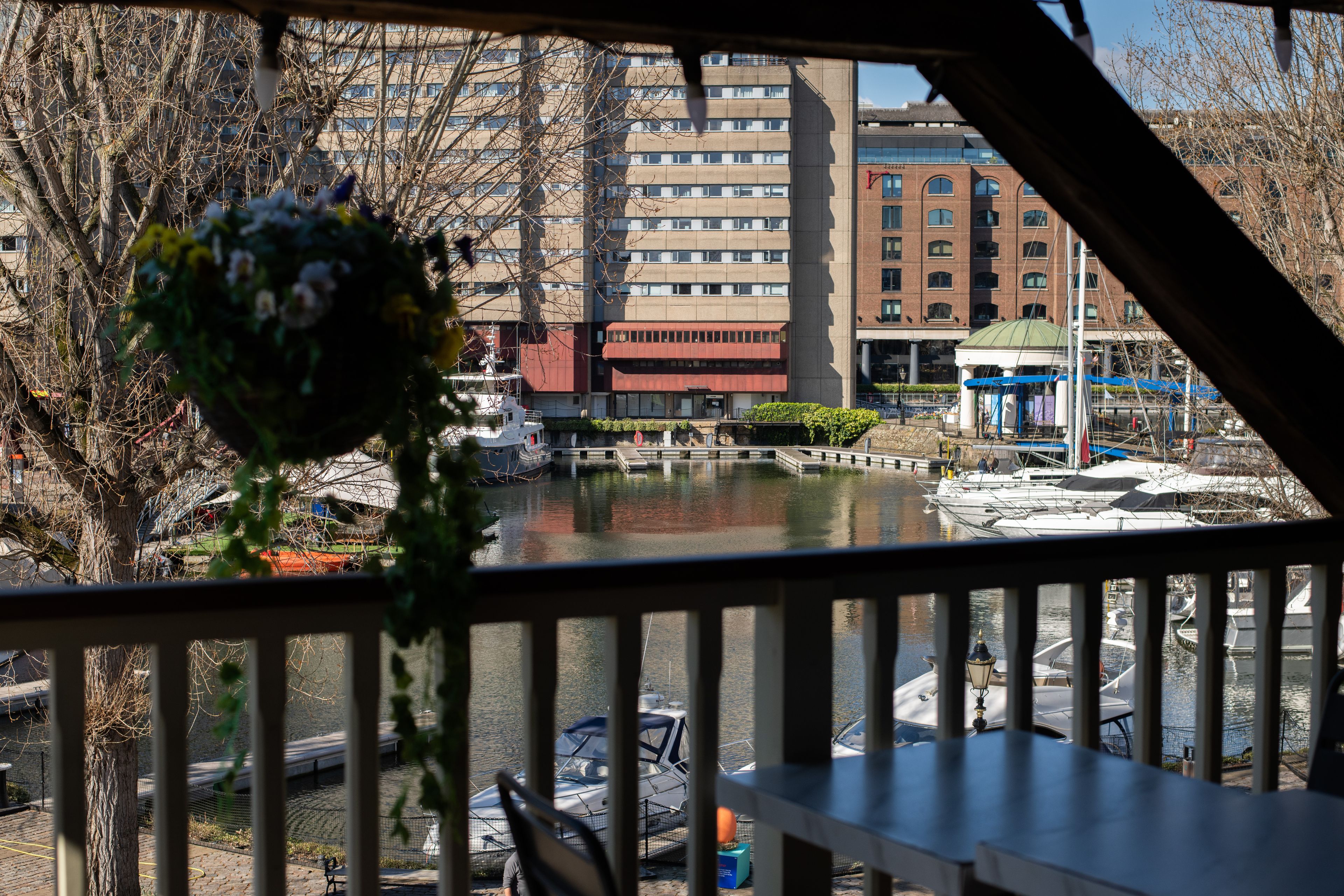 Timber framed and draped in flowers, The Dickens Inn stands as it has for generations. Inside, the atmosphere is warm and familiar; outside, the balconies open out onto one of the most unexpected views in London.